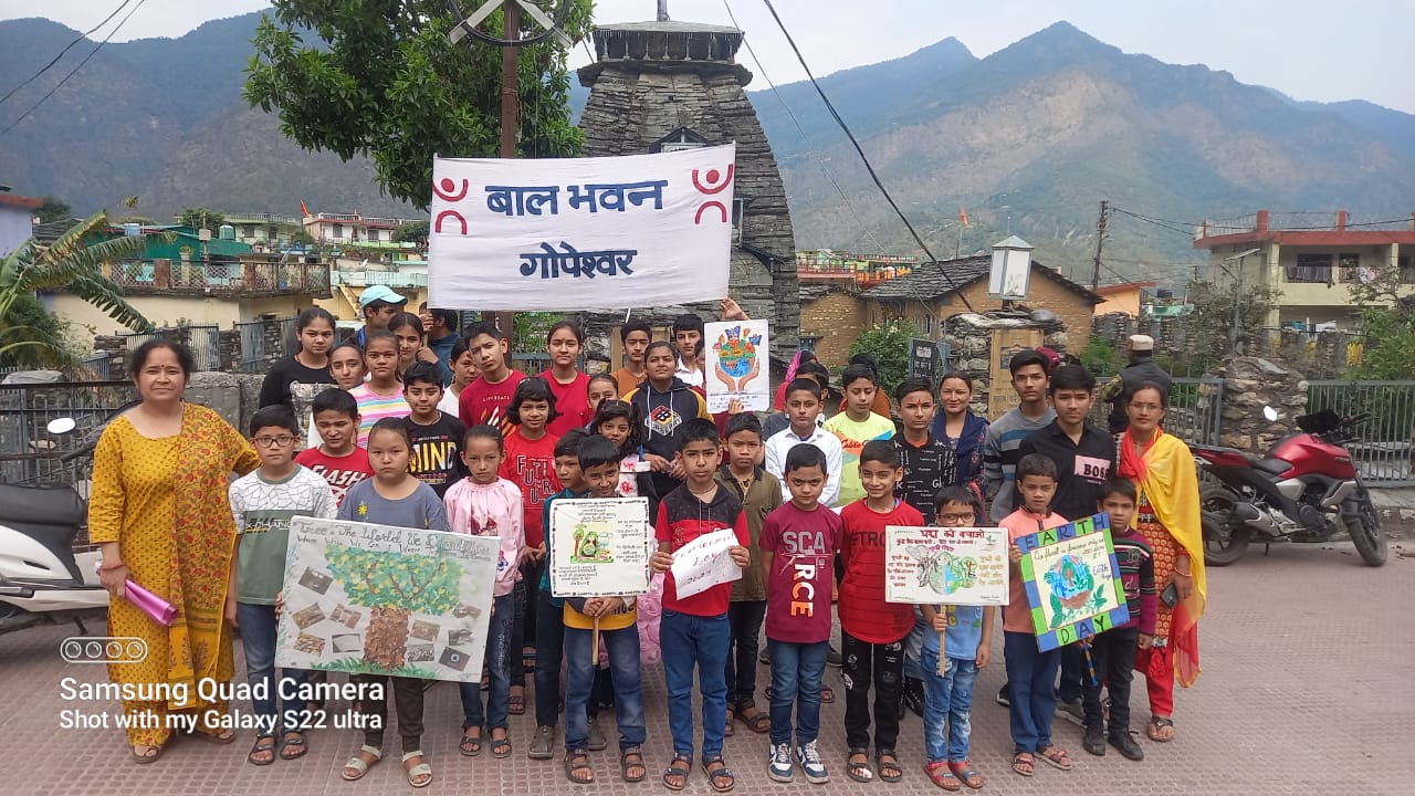 विश्व पर्यावरण दिवस पर बाल भवन गोपेश्वर द्वारा जन जागरण रैली निकाली गई I जिसमें बच्चों ने पर्यावरण और प्रकृति के महत्वपूर्ण तथ्यों को नारों के रूप में जनसामान्य तक पहुंचाया I आओ चुनमुन पर लगाएं धरती को खुशहाल बनाएं, पेड़ अगर कट जाएंगे ऑक्सीजन कहां से पाएंगे, पर्यावरण से नाता जोड़ो बीमारियों से मुंह मोड़ो, पर्यावरण का रखें ध्यान तभी बनेगा देश महान, जैसे नारों ने लोगों के हृदय पटल पर एक सकारात्मक प्रभाव डाला।